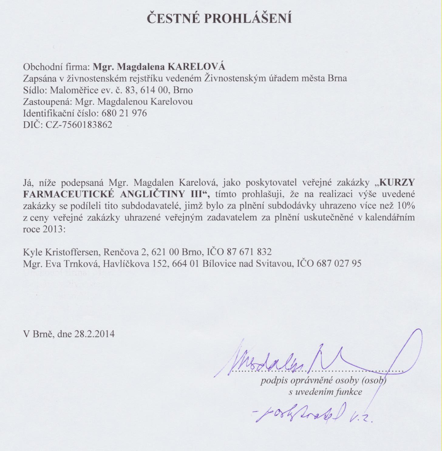 Název zakázky: KURZY FARMACEUTICKÉ ANGLIČTINY III